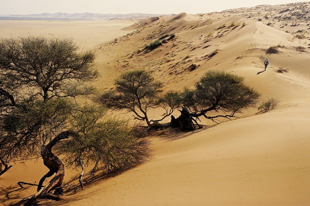 The Kalahari Desert is a vast semi-arid sandy savannah in southern Africa. Even if the Kalahari "desert" is dry enough to qualify as a desert in terms of low precipitation, it is not technically speaking a desert due to the dense ground cover.