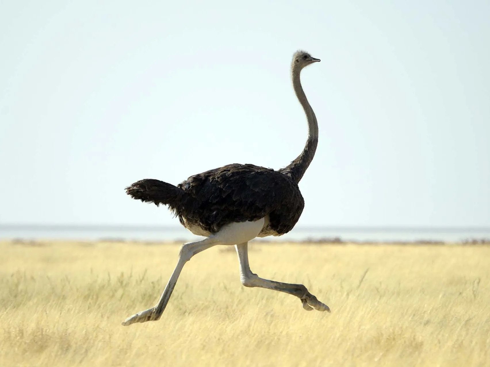 The sight of an ostrich running is breathtaking. One of the joys of an African safari is tracking an ostrich across a long distance. The safari truck frequently can't keep up with the ostriches as they run and run and run.